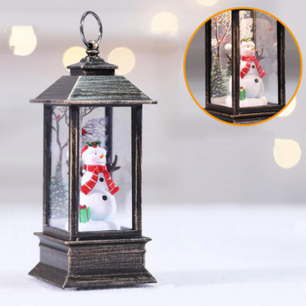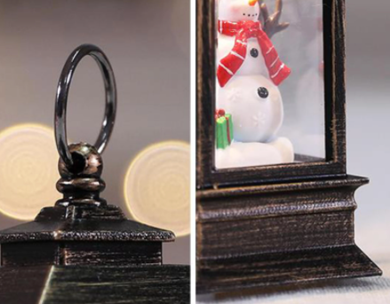 The rustic lanterns with gold brushed finish features a Snowman, Santa clause & Christmas tree along with a LED adding to the festivities of the season.